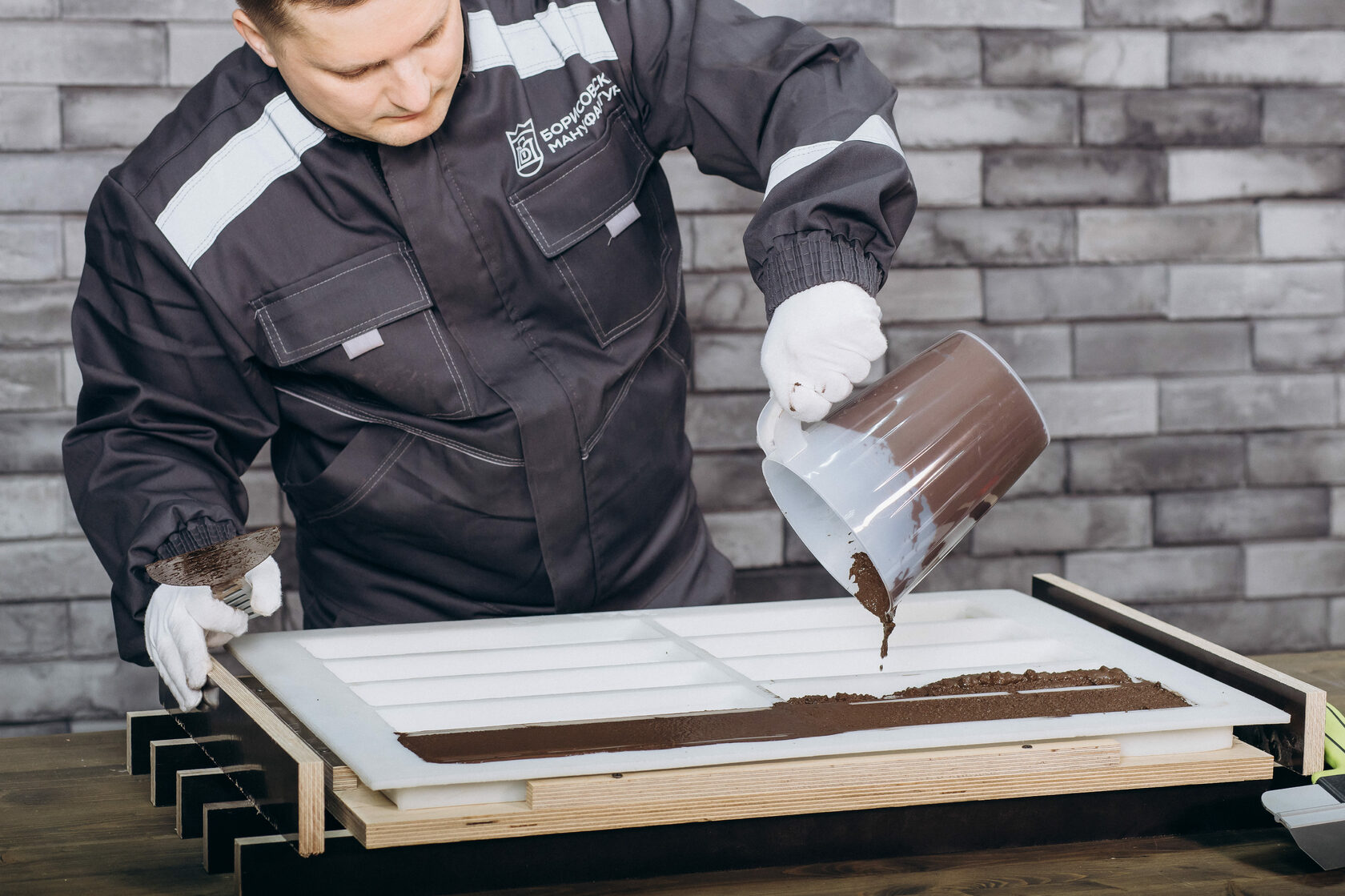 Химический состав воды значительно влияет на качество и стабильность окраски готового изделия. Обычная водопроводная вода имеет повышенную жёсткость и содержит примеси железа. Мы используем только очищенную воду, что даёт возможность наблюдать устойчивый цвет продукции на протяжении всего процесса эксплуатации.